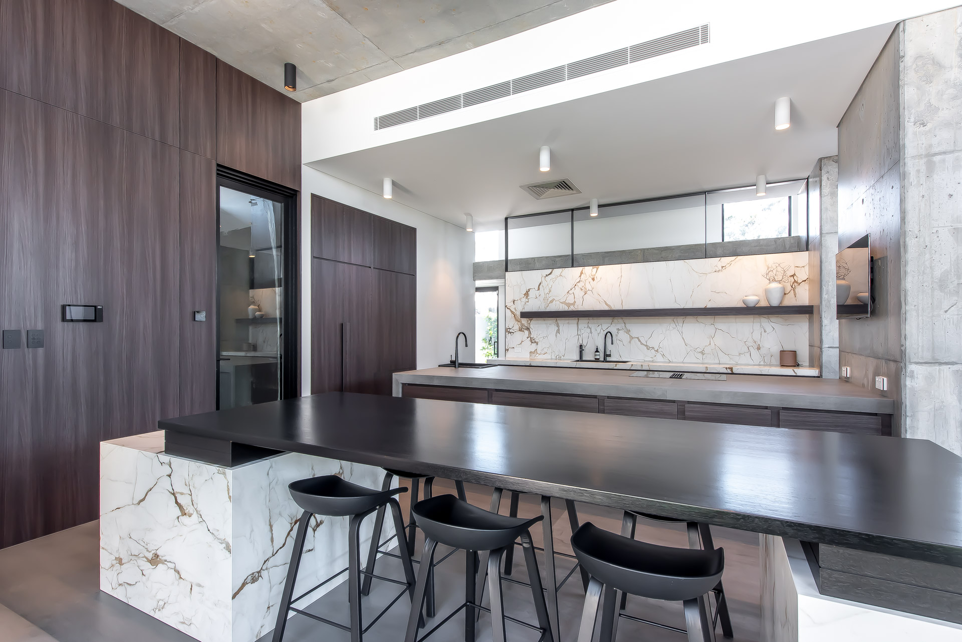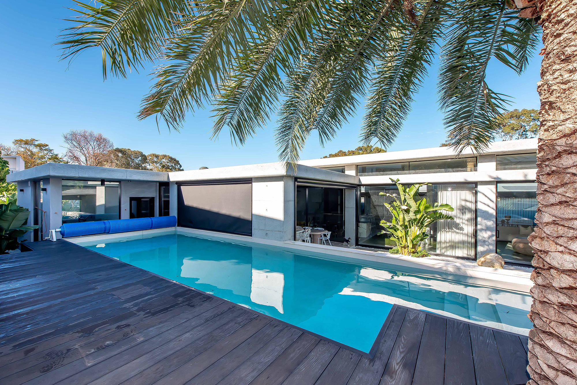 This eye-catching single-storey property pairs modern, industrial features on the outside, including a completely custom concrete roof, with a calm and stylish interior scheme. The floorplan, designed to prioritise space, light and outdoor living, makes excellent use of the 619m2 home with large open-plan living spaces and generous bedrooms.